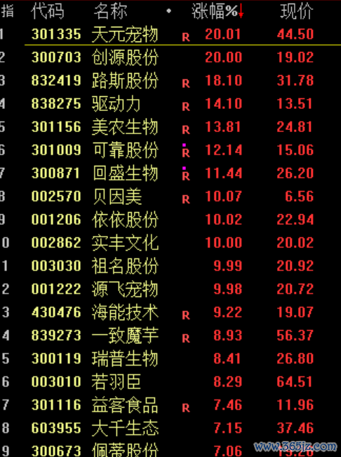 宠物经济概念股集体爆发,源飞宠物、依依股份等涨停。